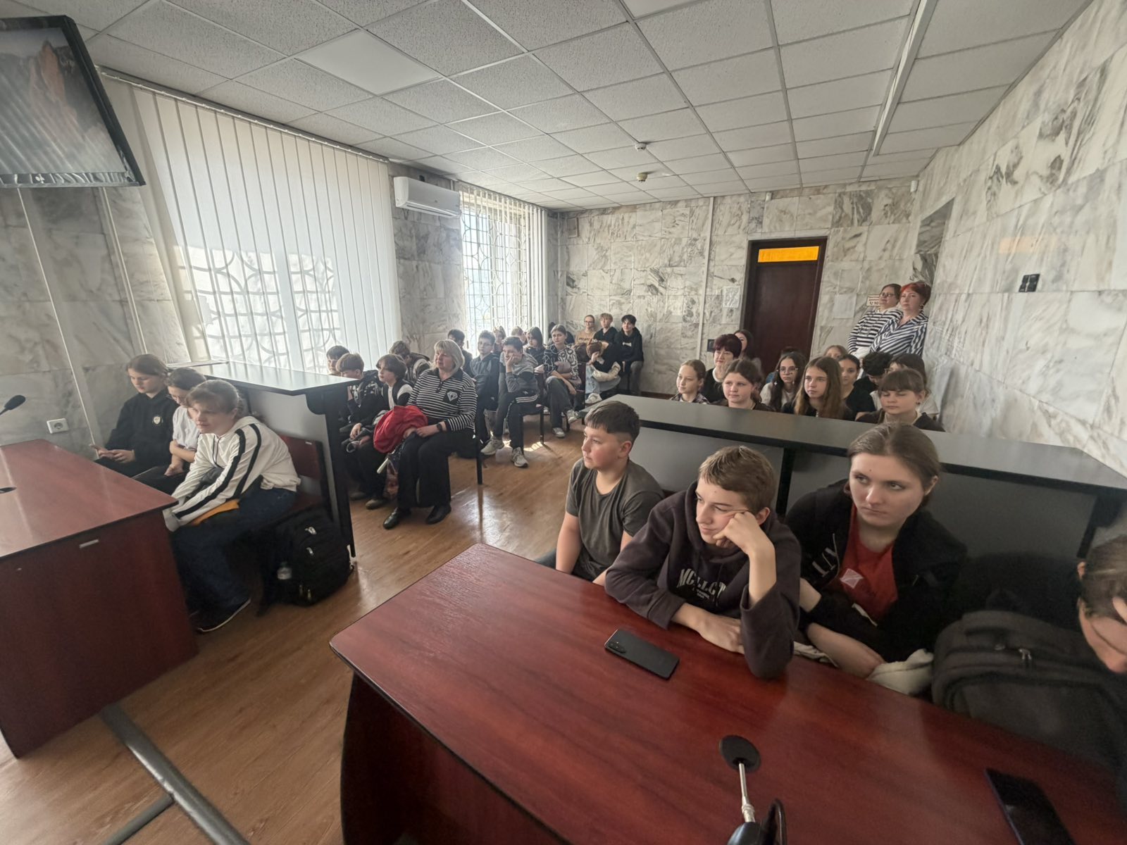 Потім юних відвідувачів запросили до зали судових засідань, де вони мали змогу ознайомитися з атрибутом судочинства - суддівською мантією, поставити запитання та отримати вичерпні відповіді на них.