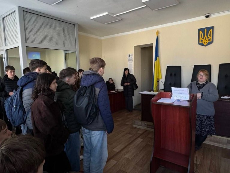 14 квітня 2026 року учні 8-А та 8-Б класів Золотоніської гімназії ім. С.Д. Скляренка завітали з екскурсією до Золотоніського міськрайонного суду у супроводі класних керівників Ірини Кононець та Віти Щепетної, а також офіцера освітньої безпеки Лариси Польової. Для них відбувся незвичний урок правознавства, який провела суддя Ватажок-Сташинська Аліна Віталіївна. Вона змістовно та цікаво розповіла восьмикласникам про історію виникнення судів: від найдавніших часів до сучасності.